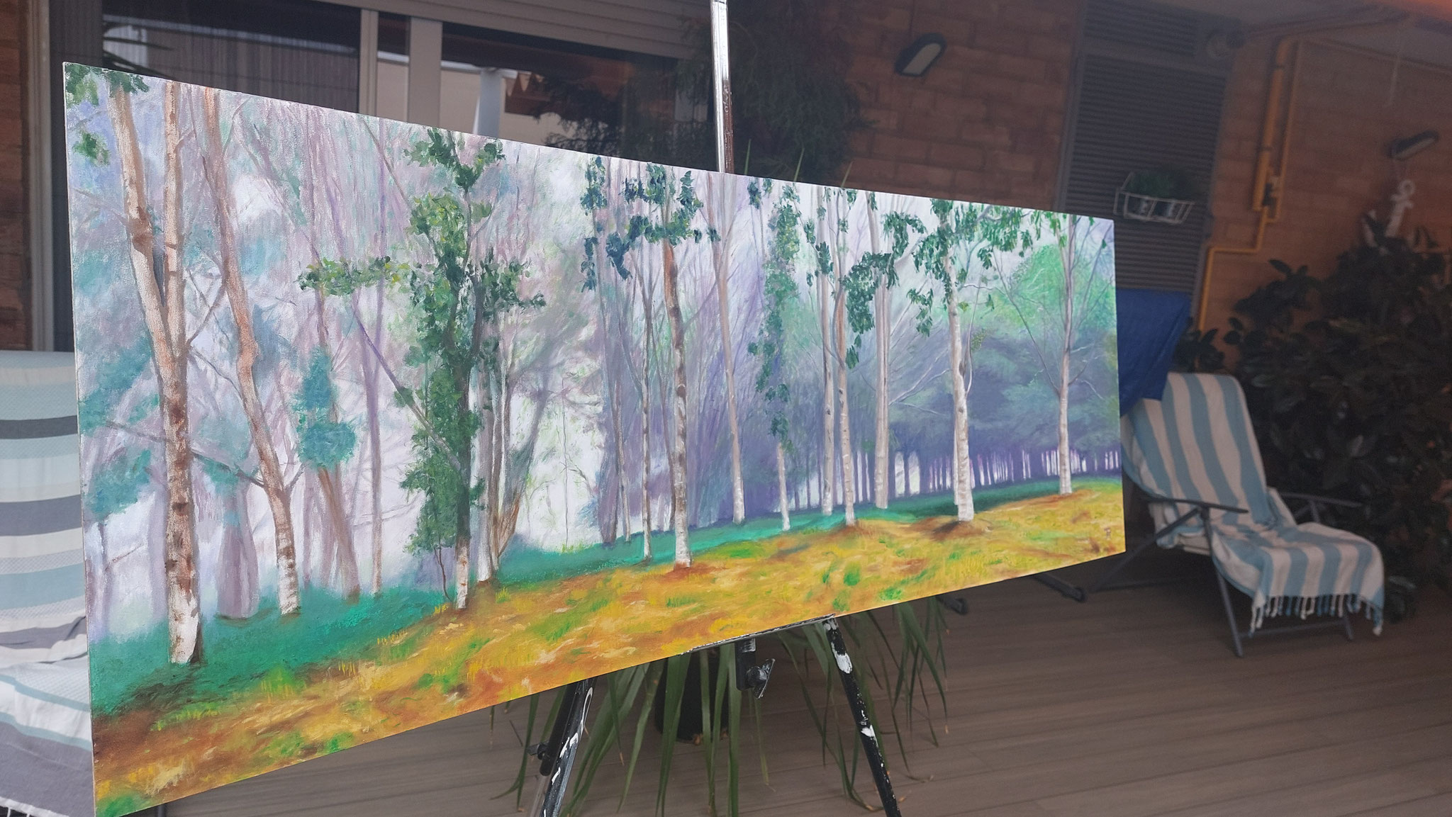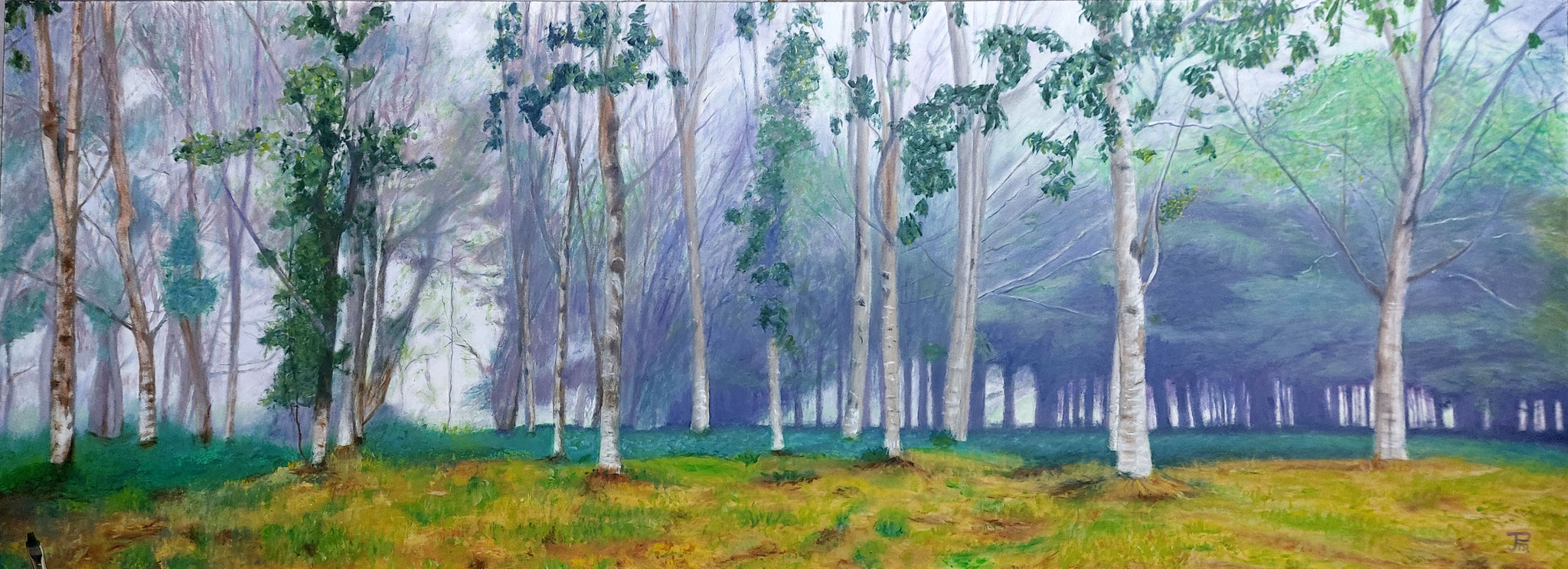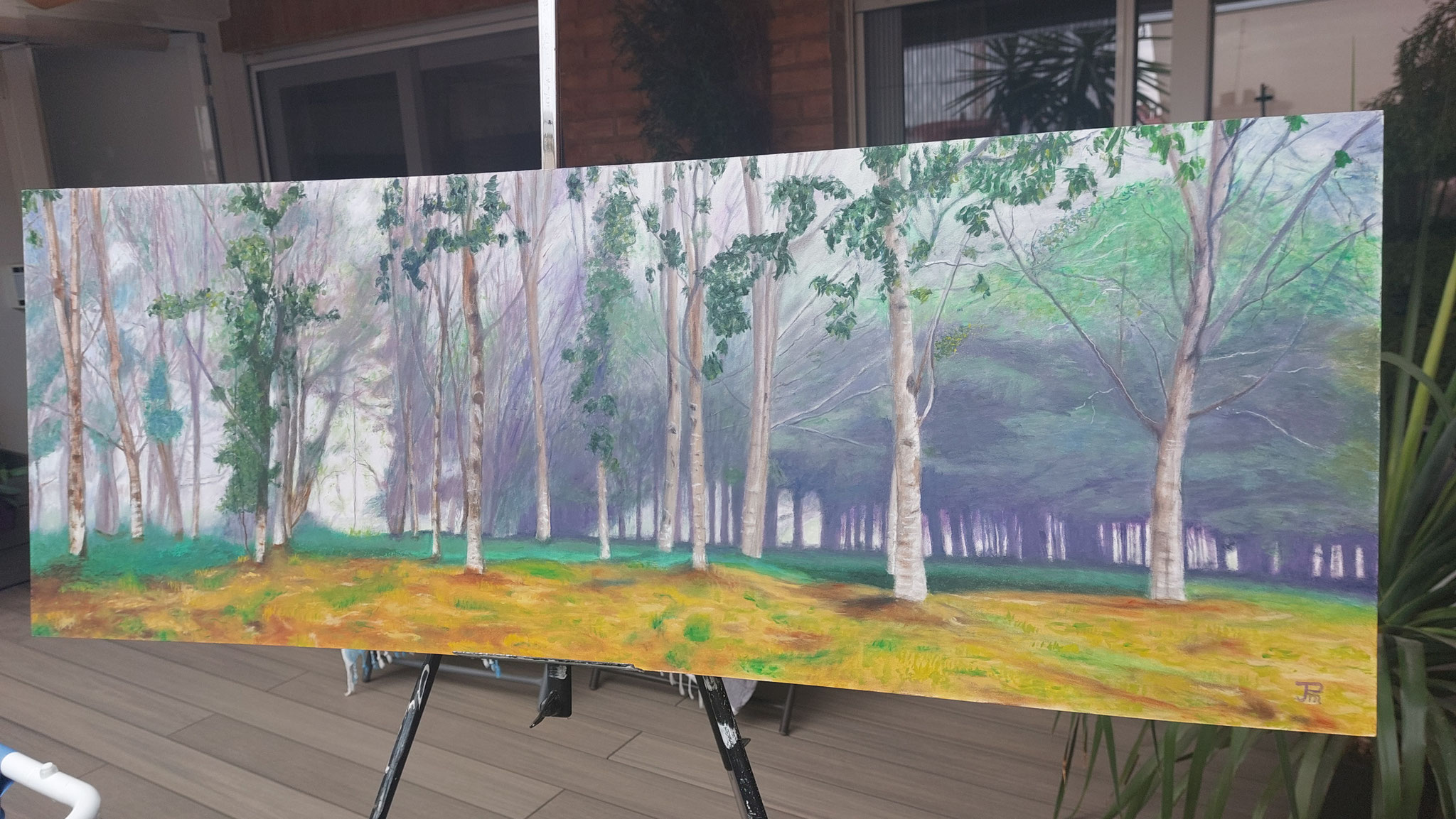 La imagen está tomada por mi, en el camino de Santiago y me cautivó la frondosidad del bosque. el silencio y el ambiente irrreal que proporciona el difuminado de los fondos, debido a la niebla.